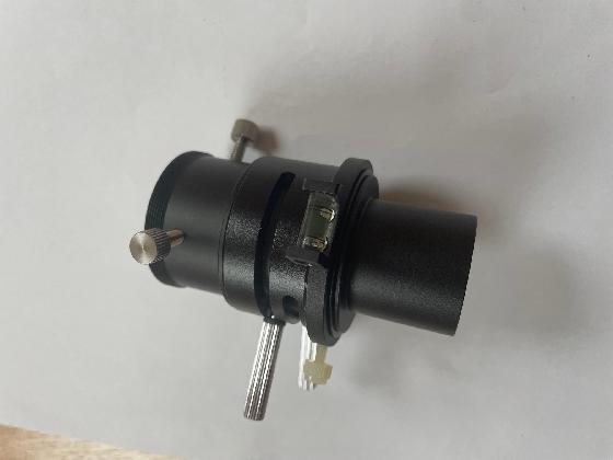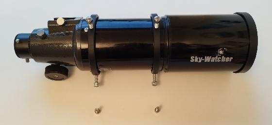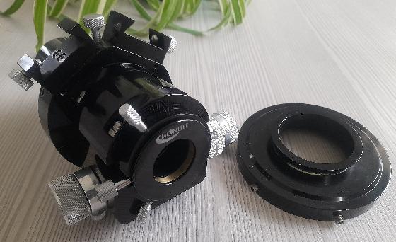 Le porte-oculaire a quelques traces de course sur le tube mais la mécanique fonctionne parfaitement bien. Livré avec deux socles Vixen et l'adaptateur 31.7 vers 50.8mm, la longueur du tube est de 12cm.