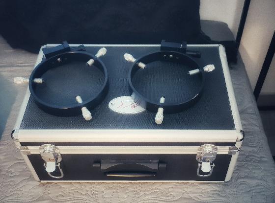 Fournis avec un contrepoids de 3 kg, le plateau d'accessoires et les flexibles sur les deux axes. Utilisable en l'état pour le visuel. Motorisée en AD avec raquette.
