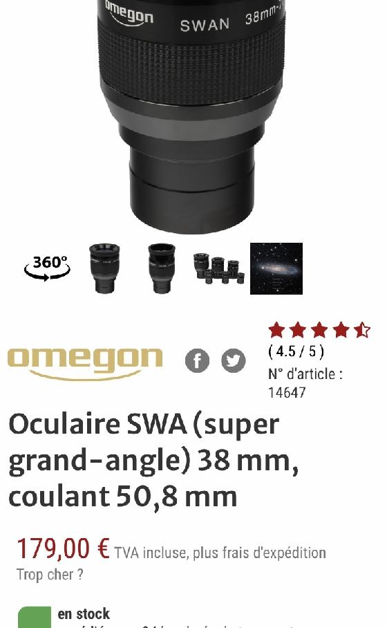 le 27-10-2023 par fedeleA vendre comme neuf (seulement de petites marques près des vis) , chercheur Takahashi 7x50 avec son dernier support couleur.