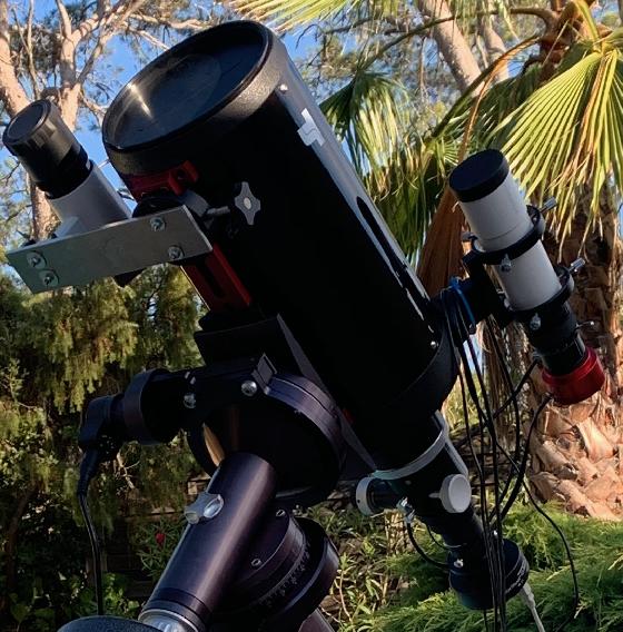 Avec queue d’aronde Vixen, 3 bagues d’extension M90, Crayford double vitesse, chercheur 50 mm et son support, masque de Bahtinov. État quasi neuf.