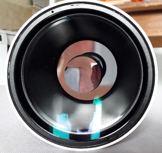 Peut-être utilisée avec des oculaires en 24.5 mm et en 31.75 mm (adaptateur inclus). Une partie de la peinture est partie sur le pare-buée (non fixé au tube).