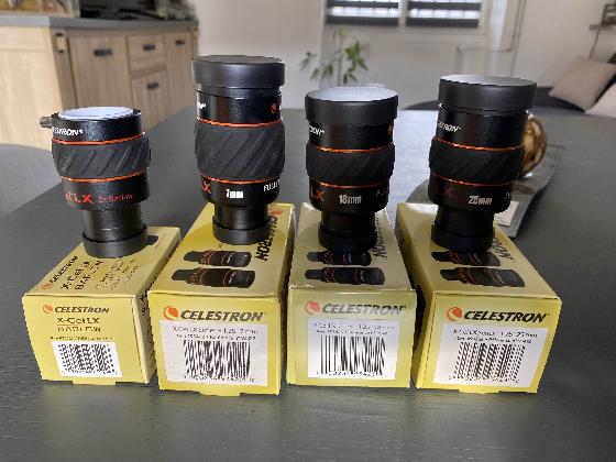[Satisfait] Oculaires X-cel LxPrix: 280€Isèrele 06-02-2022 par Raphael38690En faisant du tri pour passage à m astrophotographie, je mets en vente ce lot d oculaires Xcel Lx de celestron. Il est composé d une lentille de 7 mn d une de 18 et enfin une de 25 mn ainsi qu une lentille de barlow 2X. L ensemble est neuf donc zéro soucis et à toujours été stocké en intérieur.