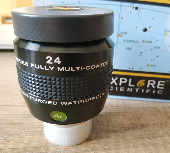 Je vends cet oculaire Explore scientific 24mm 68 degrés en excellent état avec boîte et bouchons.