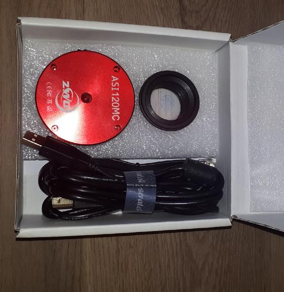 Je vends une une caméra ZWO ASI 120 MC, utilisée 1 fois. Donc état neuf. Dans sa boîte d'origine.