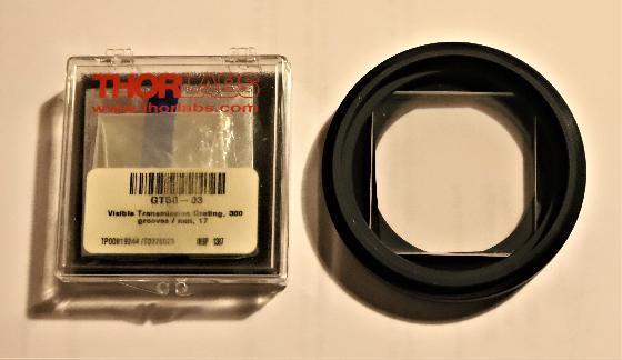 Haute Viennele 06-01-2022 par michel87Réseau de diffraction par transmission d'excellente qualité, de marque Thorlabs, 50 X 50 mm, 300 traits/mm, blazé dans l'ordre 1 (Transmission = 40%).