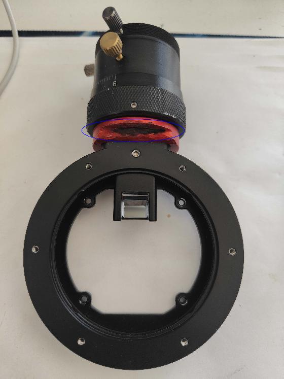 J'ai dû, pour installer un rotateur, limé une partie de la bague rouge (voir photo).