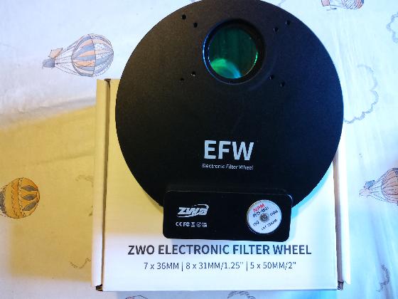 Attention : le contenu de la boite au moment de l'achat n'était pas celui présenté actuellement sur le site de ZWO. Les "darkening rings set" n'existaient pas et il y avait seulement 8 "filter masks" (pour 7 filtres).