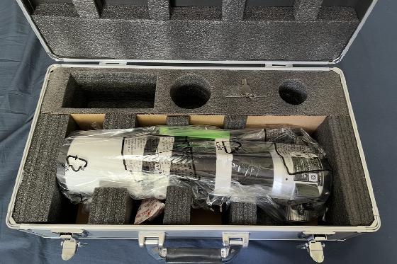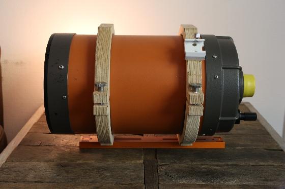 Il y a des éclats de peinture sur le tube mais les optiques sont absolument impeccables. Le tube possède des anneaux en contreplaqué d’excellentes qualité qui permettent de l'utiliser avec une queue d'aronde Vixen