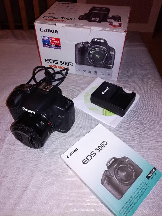 Il est vendu avec un Canon 50mm F1.8 en très bon état .