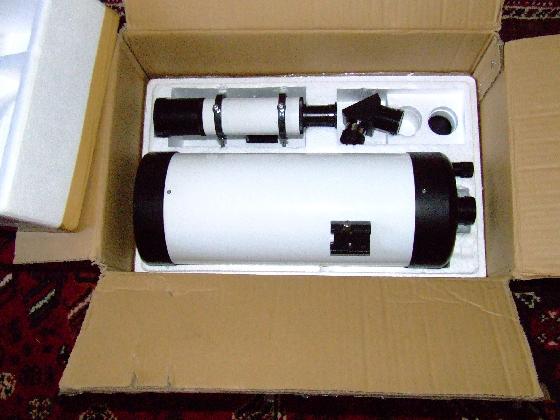 Il est muni de son chercheur 8x50, du porte-oculaire 1.25" et du renvoi coudé à mirroir 1.25", un plossl de 25mm est aussi inclus.