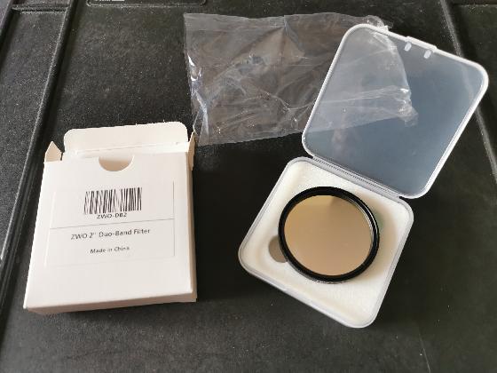 Reçu lors de l'achat d'une caméra au cours du black friday ZWO 2021 (set caméra, porte filtre + tiroir a filtre et filtre duo band), j'avais déjà un filtre NBZ, je ne me suis jamais servi de ce filtre.