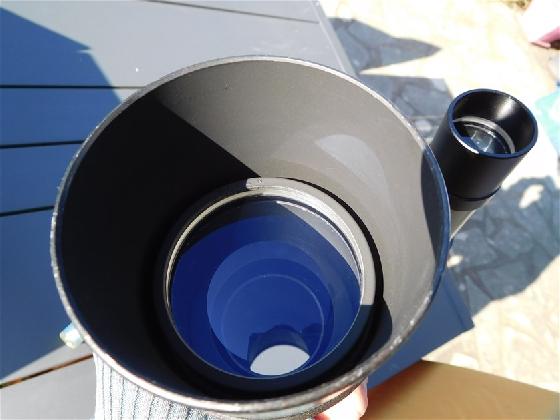 La lentille d'entrée est légèrement "fissuré" sur 1cm à l'extrême bord sous le diaphragme, cela n'a aucune conséquences sur les observations.