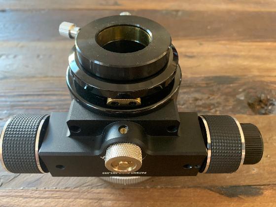 Il provient d'un microscope "Jenamed", j'ai ajouté des adaptateurs pour utiliser des oculaires d'astronomie. Les prismes font 23mm (ce n'est donc pas la même version que celui de Baader, mais un peu plus petit).