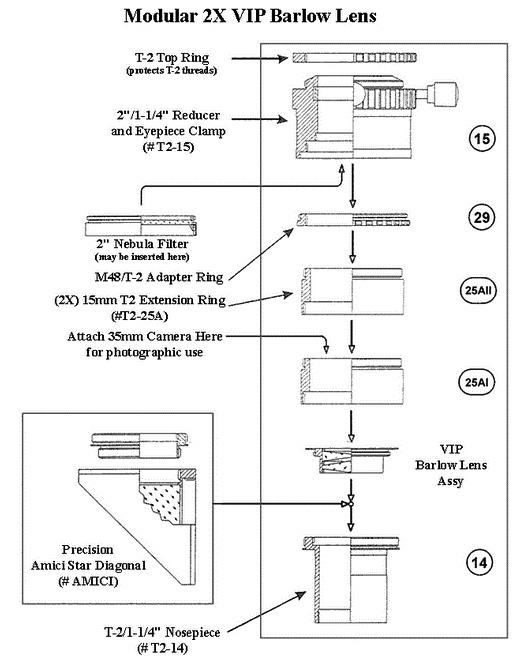 Lentille de Barlow Baader VIP (utilisable en Visuel et en Photographie). Facteur de grossissement 2x, coulant 31,75 mm.