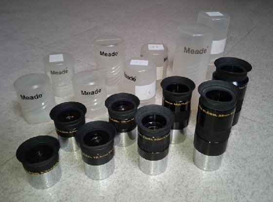 Je vends ce lot de 8 oculaires Meade SP 4000 qui ne m'est plus utile maintenant, avec les focales connues à l'époque : 6,4mm, 9,7mm, 12,4mm, 15mm, 20mm, 26mm, 32mm et 40mm. Chaque oculaire a sa boîte cylindrique individuelle.