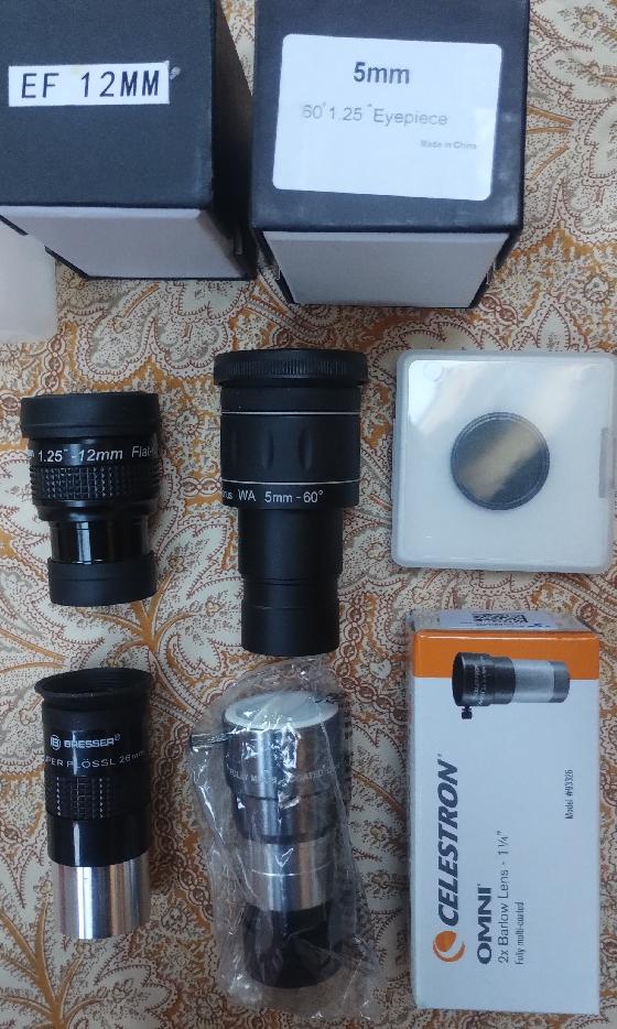 Je donne avec un oculaire bresser 26mm et un renvoi coudé basique plastique 1.25 pour dépannage