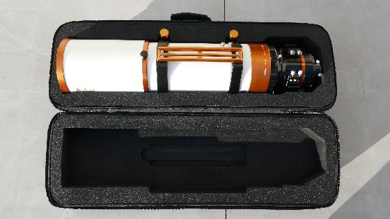 - 1 tube de télescope Celestron C8 Edge HD (réf 91030-XLT) – diamètre 203 mm / focale 2000 mm / rapport F/d 10) équipé d’une queue d’aronde type Losmandy, d’un chercheur 9 x 50 mm, d’une sortie classique vissante pour SCT (visual back 31,75 mm), d’un renvoi coudé 31,75 mm, et d’un oculaire Celestron Plössl de focale 40 mm