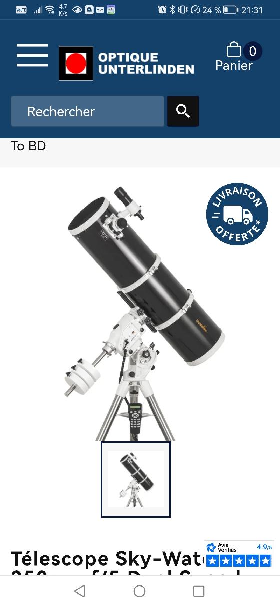 [Satisfait] Sky watcher 1000x250Prix: 2000€Vosgesle 19-08-2025 par Jeunesse ÉtoiléeCause santé, vend télescope et son trépied.