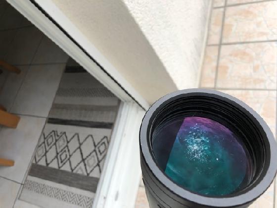 Le miroir est un peu sale mais n'empêche pas l'observation (je n'ose pas le nettoyer car je ne m'y connais pas assez). Il y aura juste le chercheur point rouge à refixer (il tenait avec du double face) et certainement une collimation.