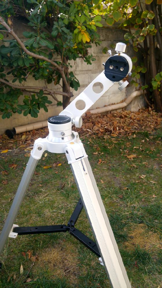 La mienne est blanche. Le bras peut se fixer sur plusieurs positions, notamment légèrement vers l'arrière, ce qui permet de pointer le zénith.