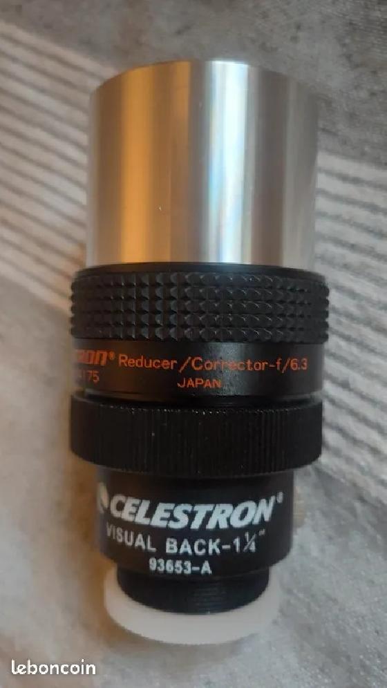 Correcteur/Reducteur Celestron - f/6.3 plus rallonge M48 plus adaptateur visual back CelestronPrix: 130€Yvelinesle 25-09-2025 par SalahmVends correcteur/réducteur Celestron 2“- f/6.3 pour télescope Schmidt-Cassegrain. Il est équipé de sa rallonge M48 et son adaptateur visual back Celestron - 1 1/4“. Il est en parfait état. Remise en main propre ou envoi possible.