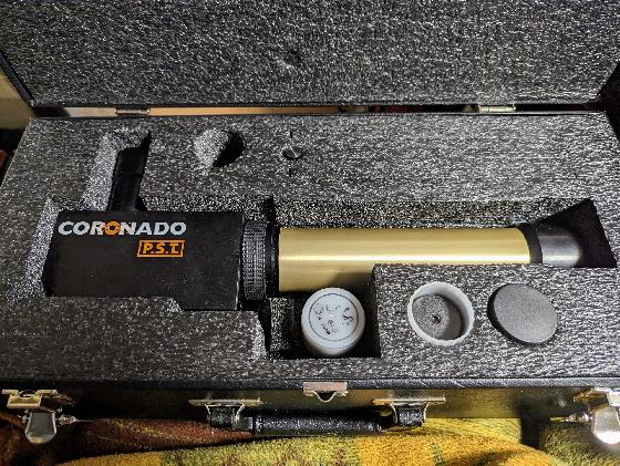 Audele 29-12-2022 par f5cmqTube PST Coronado en très bon état avec sa valise bois (supplément 230 Euros prix catalogue), fourni avec quelques oculaires d'entrée de gamme.