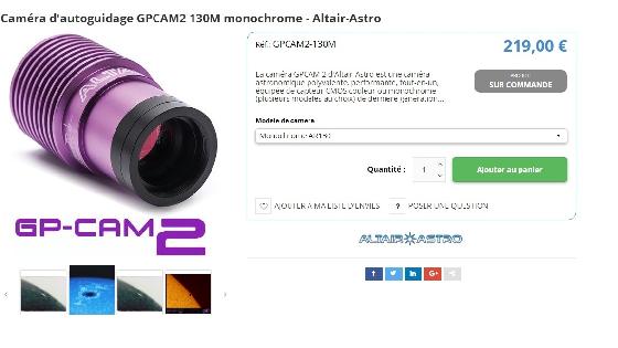camera autoguidage AltairPrix: 170€Rhônele 08-03-2024 par ardiapVends cause changement matériel une caméra GPCAM2 avec facture achetée en 2023, parfait état.