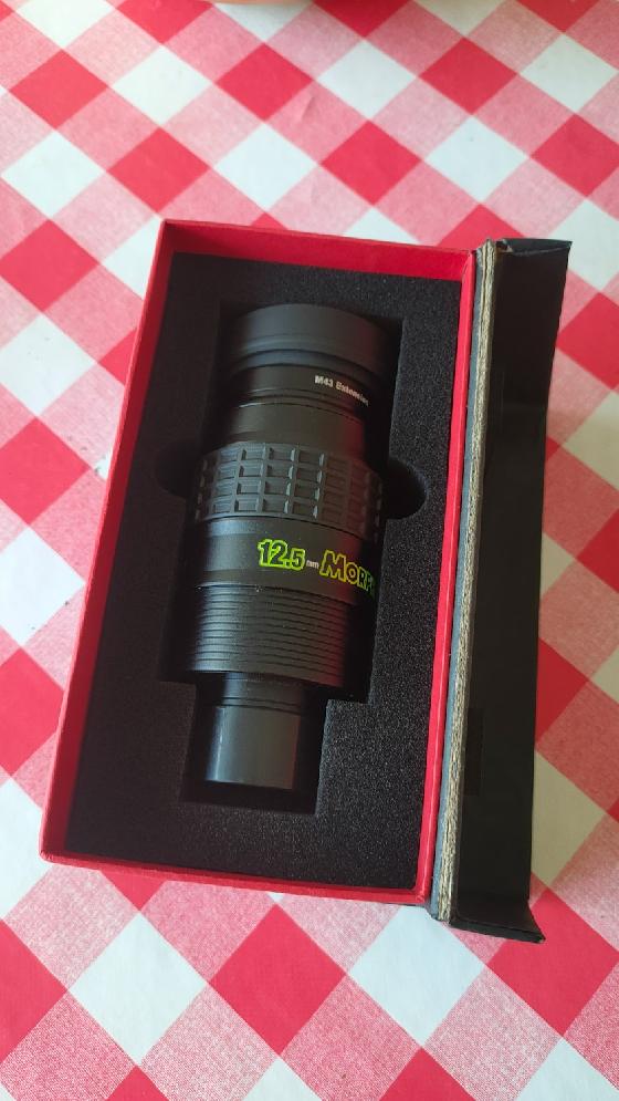 -,Baader Morpheus 12.5mm avec boîte d’origine, sacoche jaune Baader, les deux bonnettes et les capuchons anti-