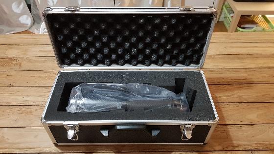 Elle est vendue SANS l'écrou de fixation situé sous la table pour la tenir (RIP petit écrou) mais avec ses 2 contrepoids et le trépied.
