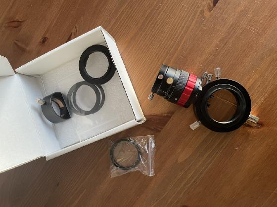 PO: Hexafoc 2,5", un adaptateur 50,8/31,75, avec un tube d'extension 37,5mm. Supporte facilement les oculaires les plus lourds. D’un diamètre de 65 mm de diamètre (2,5 "), il permet d’éviter tout vignettage (Voir photo).