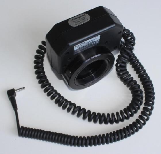 s'adapte sur le filetage de sortie SCT du télescope il se relie à la connectique de la monture, piloté directement avec la raquette Autostar II ou Autostar III.