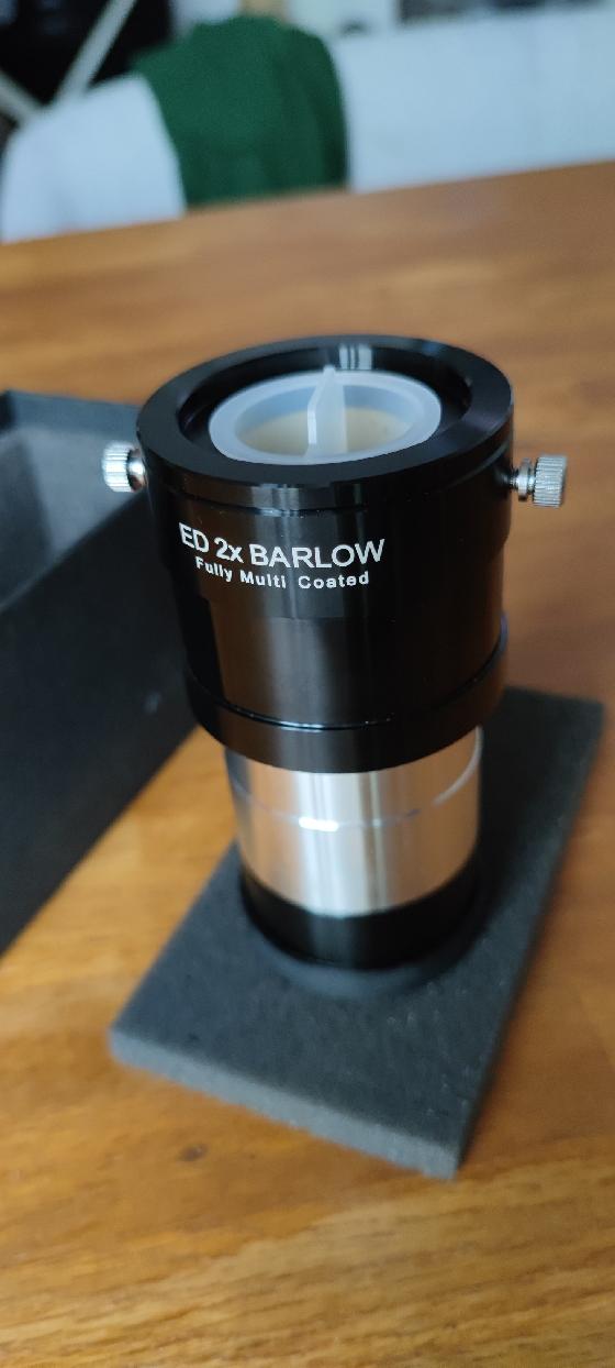 Une lentille de Barlow ED 2X, 2 pouces avec adaptateur 1.25 pouces.