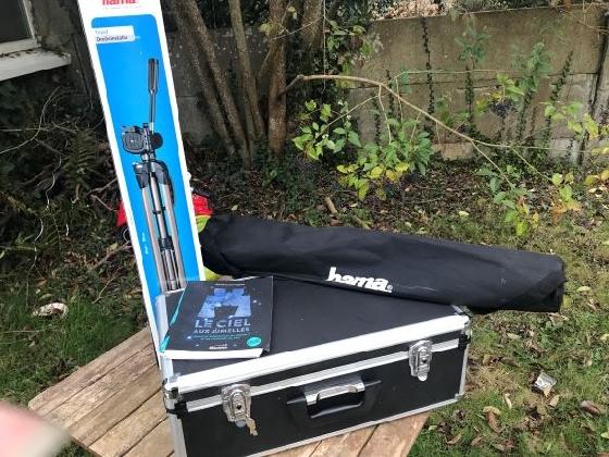 - J’en ai pris très soin : état est comme neuf, vendu avec ses accessoires d’origine (trépied solide en aluminium, deux oculaires 25 mm et 10 mm, lunette de visée, lentille de Barlow x2)