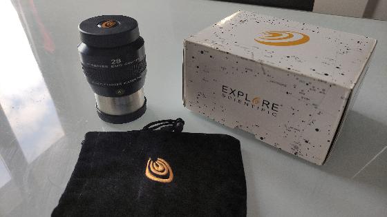 La lunette comporte un objectif achromatique de 60 mm de diamètre et une distance focale de 240 mm (f/4), des bagues de support PLUS de 80 mm, et un porte-oculaire hélicoïdal non-rotatif avec connexion 31,75 mm + une extension, et deux petits adaptateurs pour fixation sur EAGLE.