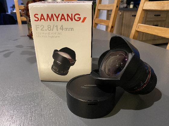 Isèrele 20-05-2021 par Loutins38Je vends un objectif Samyang 14 mm en F2.8 Canon. Etat neuf dans sa boite . Outil parfait pour la photo de la voie lactée et grand champ.