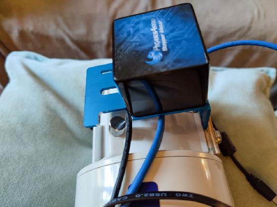 J'ai dû "couper" un bout de l'alu sur le support pour l'adapter sur ma lunette. Voir photo. Ça ne devrait pas poser de problème vu que c'est la partie haute (puis au pire 3 vis sur 4 peuvent largement suffire à la bonne fixation). Mais si jamais, ça se trouve neuf (https://laclefdesetoiles.com/colliers-queues-d-aronde-supports/6629-adaptateur-support-universel-en-l-pegasus-astro-pour-motor-focus.html)