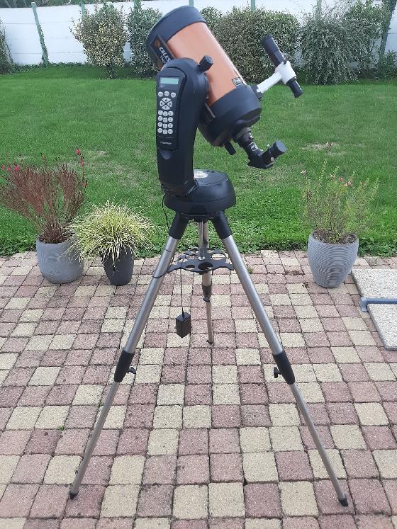 Première main, achetée en mai 2018, la monture comprend tous les équipements d’origine (platine Vixen, trépied acier de 2 pouces, contre-poids de 5kg, plateau porte oculaires, raquette de contrôle Celestron NexStar+) ainsi qu'un viseur polaire.