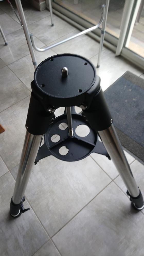 Elle est associée à une monture azimutale Vixen custom, trépied type AL90, révisée, un flexible remplacé.