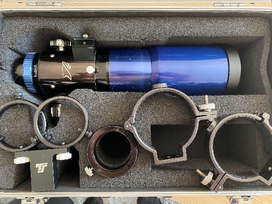 Je vends également le support pour chercheur (9x50) pour l'observation visuelle ou autoguidage, la malette de rangement, collier de serrage pour la lunette.