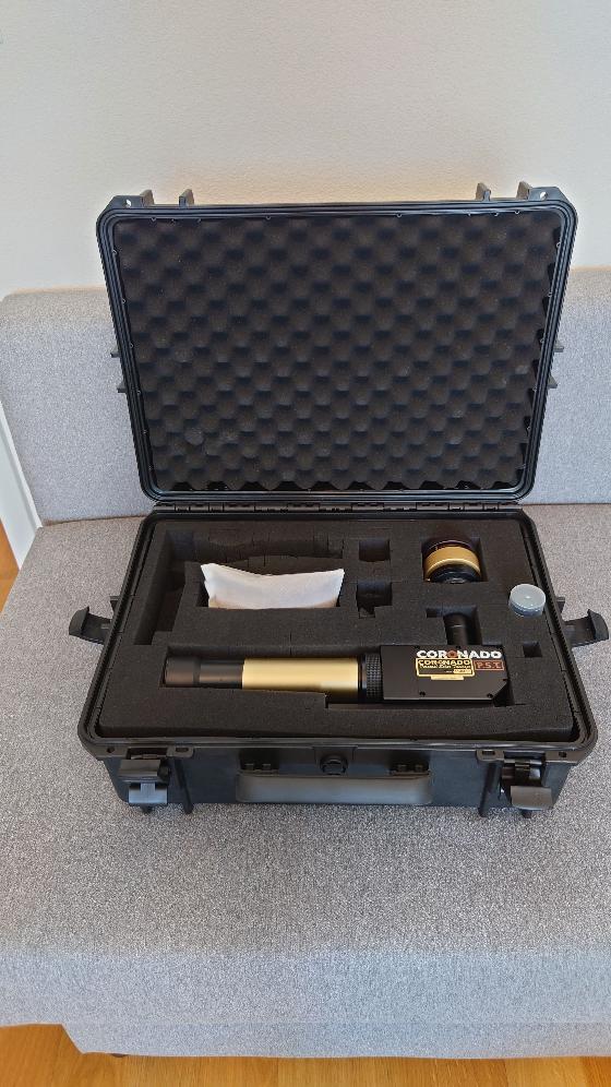 [Satisfait] Coronado PST double stackPrix: 1800€Suisse Romandele 11-02-2023 par coconutsCoronado PST avec double stack, valise de transport et oculaire coronado 18mm. Le PST et en parfait état (état neuf) et est monté sur une queue d'arronde vixen (fournie). La valise de transport contient également un sachet de 500 grammes de dessicant. Valeur à neuf EUR 2'600.- . Il est vendu EUR 1800.-.