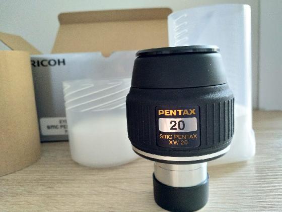 235 euros fdp inclusLoirele 21-10-2018 par SPARKYVends oculaire PENTAX 20 mm XW 70° en 1,25 pouce coulant 31,75 mm ; relief d'œil 20mm ; Référence en contraste et transparence ; Etat neuf avec boite d’origine 1ère main récent (acheté en mai 2018 chez Optic Unterlinden à 339 € neuf - Facture et photo disponible à la demande) ; Prix à 235 € fpi...