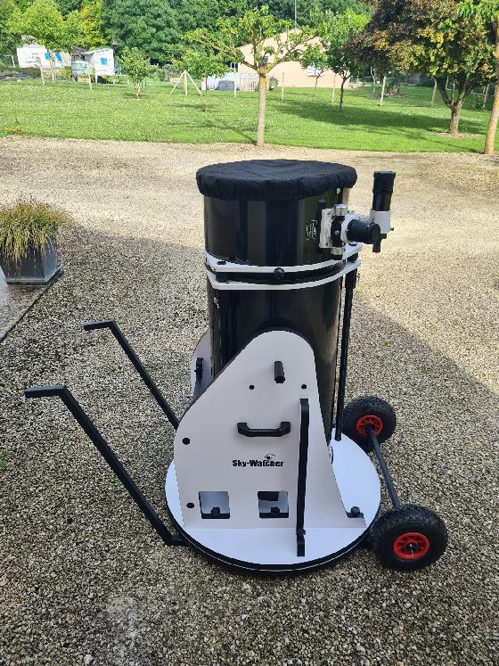 A vendre télescope Skywatcher flextube 400 avec châssis pour le déplacer facilement et une jupe