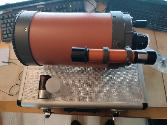 Je donne avec une caisse de transport en bois, le carton d'origine et les accessoires : chercheur droit neuf et occulaire 2 pouces 28mm.