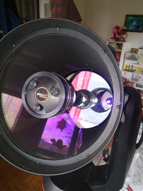 Mon observatoire étant installé dans un puits de lumière dans ma maison, je suis contraint, faute de place, de réduire sensiblement le diamètre de mon télescope pour améliorer mes positions d’observations.