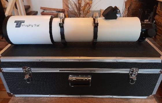 Lunette APO TS Optic Imaging Star 102mm, F/D 5.1, triplet FPL53 + correcteur 2 éléments intégré au PO, aucun problème format APS-C, jamais essayé en FF; valise de transport d'origine, adaptée pour la lunette et la lunette guide montée