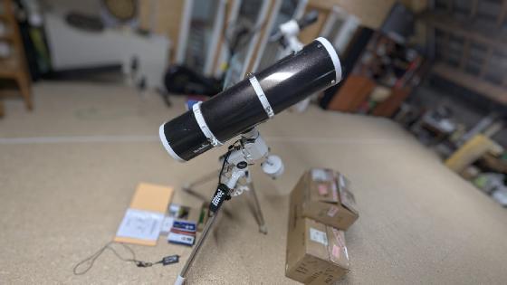 elle est sur un support d'origine queue d'aronde type vixen. L'optique n'est pas parfaite,quelques traces de champignons, peut faire une très bonne lunette guide. Vendue avec renvoi coudé 2 pouces (+ filtre UR Cut) et adaptateur 1 "1/4.