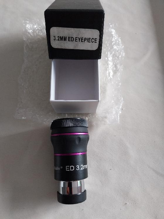 je fais un peu le ménage de matériel qui sert peu pour financer un projet astro et je vends cet oculaire Artesky ED 3,2mm 60° au coulant 31,75mm. Bonnette vissante.