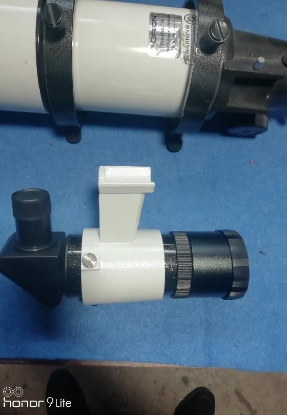 Système pratique et bien conçu avec deux bagues dont la première se fixe sur la jupe d'un oculaire (taka 30mm) et la seconde comporte trois vis à 120° qui permettent l'orientation et le cadrage.