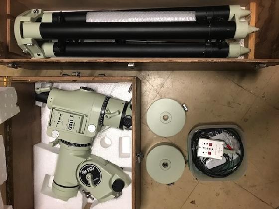 Male de rangement avec contrepoids, viseur polaire éclairé, trépied, système queue d'aronde Losmandy sur platine, câble alimentation 12v.