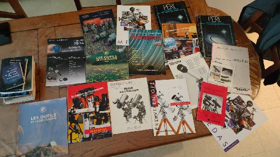 Ancien catalogue, la maison de l'astronomie 2014 2000, + année 80, catalogue nature et découverte, catalogue bresser 1989, documents perl, vixen medas etc